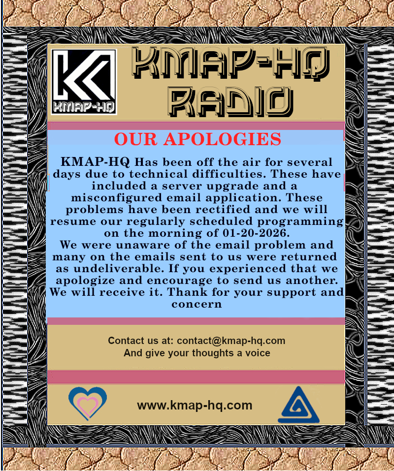 KMAP-HQ We apologize to our listeners we had some technical difficulties and will resume our regularly scheduled programs on 01/20/2025. Please view the included link.