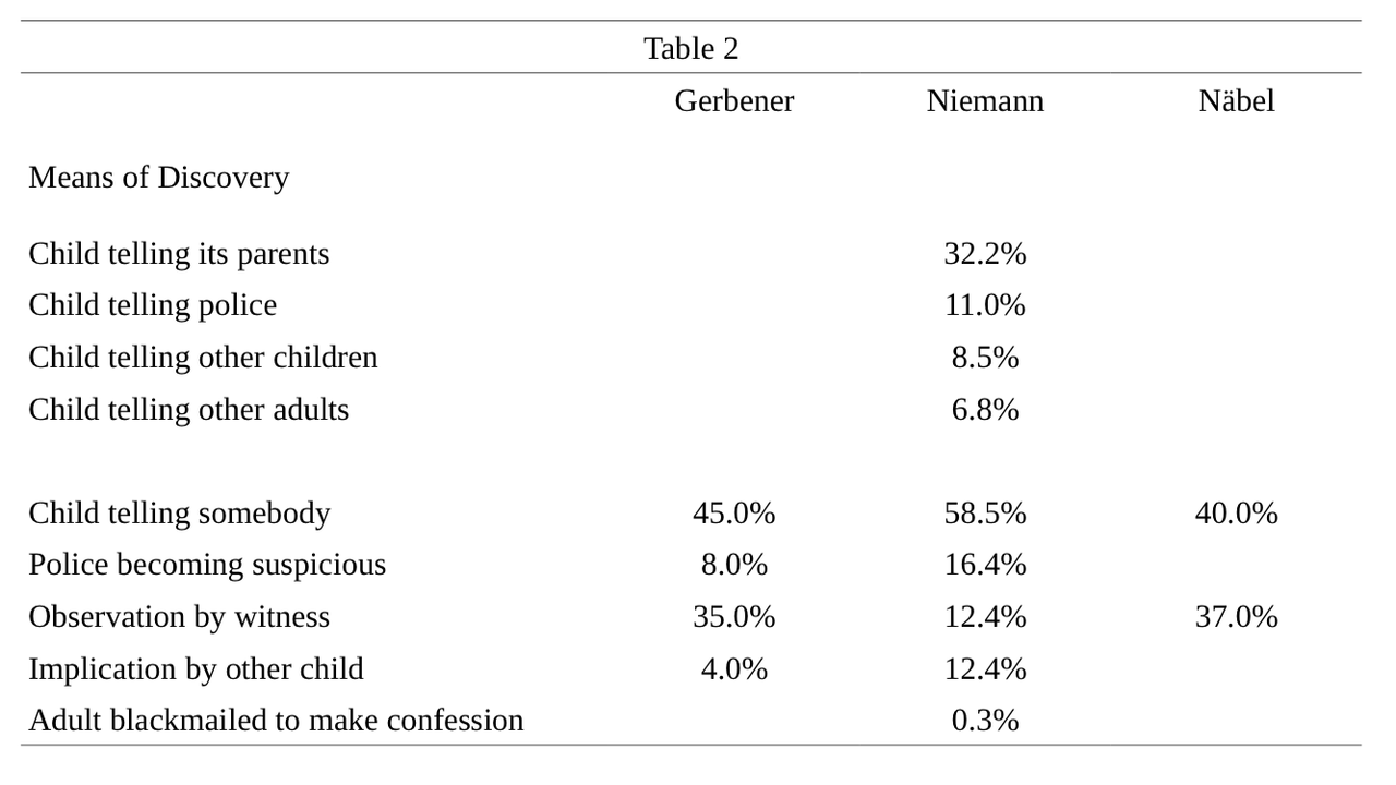 how such man/boy affairs came to be discovered. Gerbener’s sample was 515, Niemann’s 354 – all